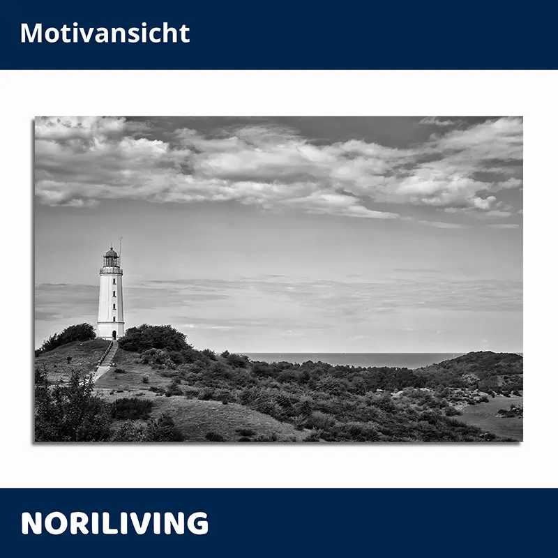 Produktinformationen "Duschrückwand Aluverbund Leuchtturm Dornbusch Insel Hiddensee Ostsee 028 schwarz-weiß"