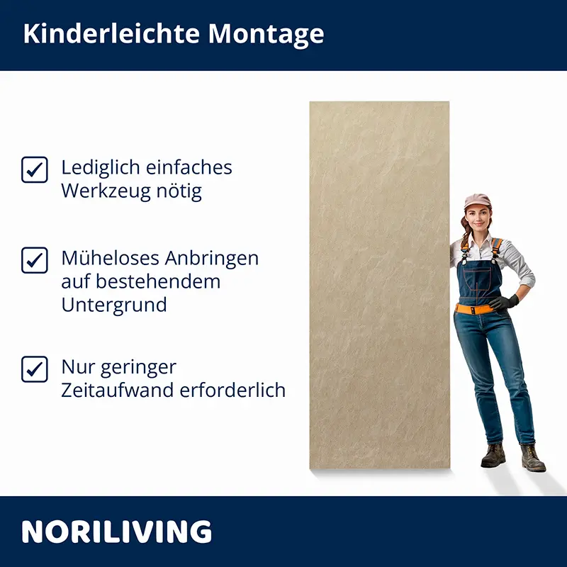 - Weniger Staub, Lärm, Schmutz und Abfall im Vergleich zur herkömmlichen Fliesenverlegung